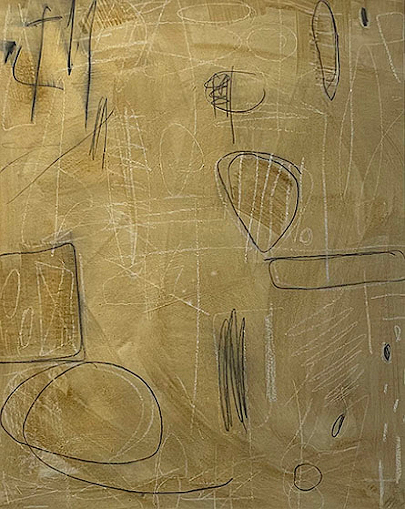 This captivating piece by Murray Duncan showcases his signature expressive style, where organic forms and structured elements converge with fluid motion. The dynamic composition, defined by gestural lines and layered textures, evokes a sense of depth and movement, making it a striking focal point in any space.