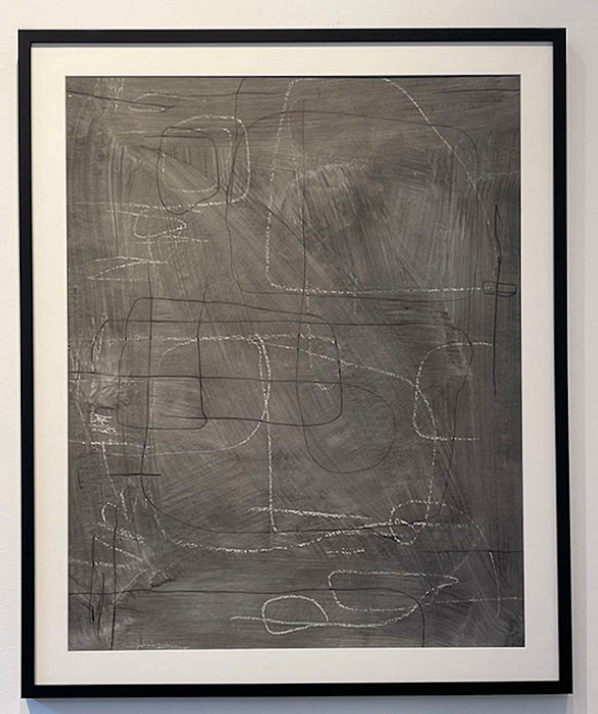 This captivating piece by Murray Duncan showcases his signature expressive style, where organic forms and structured elements converge with fluid motion. The dynamic composition, defined by gestural lines and layered textures, evokes a sense of depth and movement, making it a striking focal point in any space.